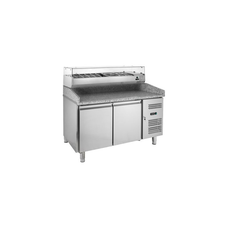 Table pizzaïolo ECO 0/2 avec présentoir réfrigéré adapté pour 7 bacs GN 1/4